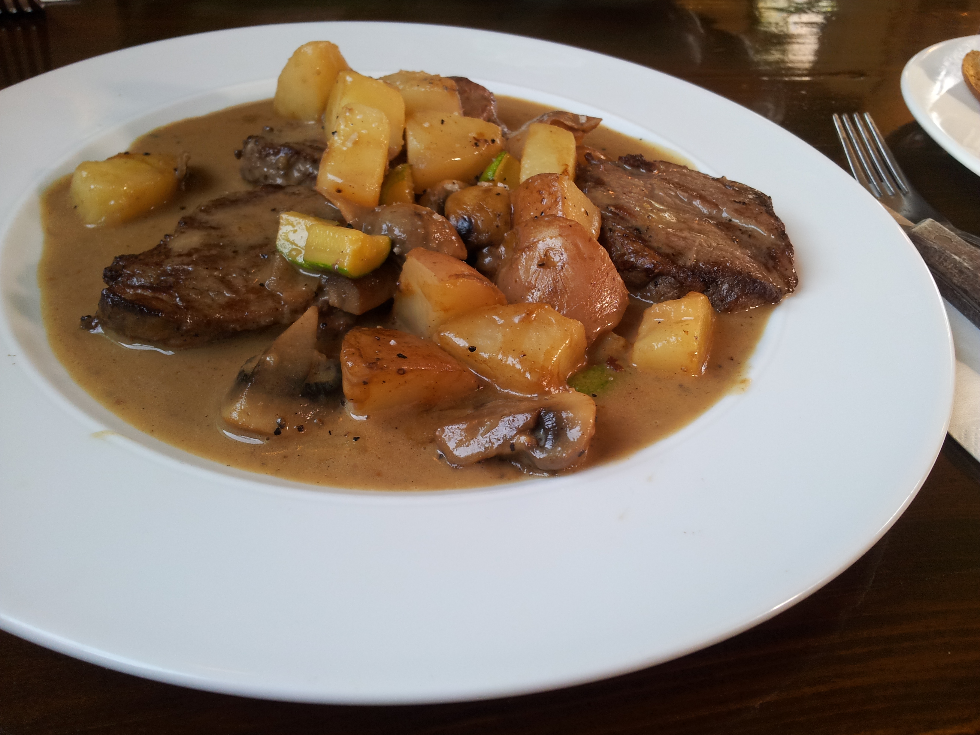 אם הגעתם עד רוטנברג, אל תצאו בלי שטעמתם את שוק הטלה. נתחי הבשר הרכים בושלו ביין אדום והונחו בתוך רוטב עשיר, כשמתחת לבשר הטלה הסתתר פירה נימוח, חציו בתוך הרוטב וחציו מבצבץ החוצה. כל ביס מהבשר גילה עוד מצבור של פירה והשילוב של שניהם עם הרוטב היה מושלם. ראוי לציין שכל המנות היו נדיבות מאוד, ראשונות כעיקריות, והוכיחו שמנת שף לא חייבת להסתכם בנגיסה וחצי.