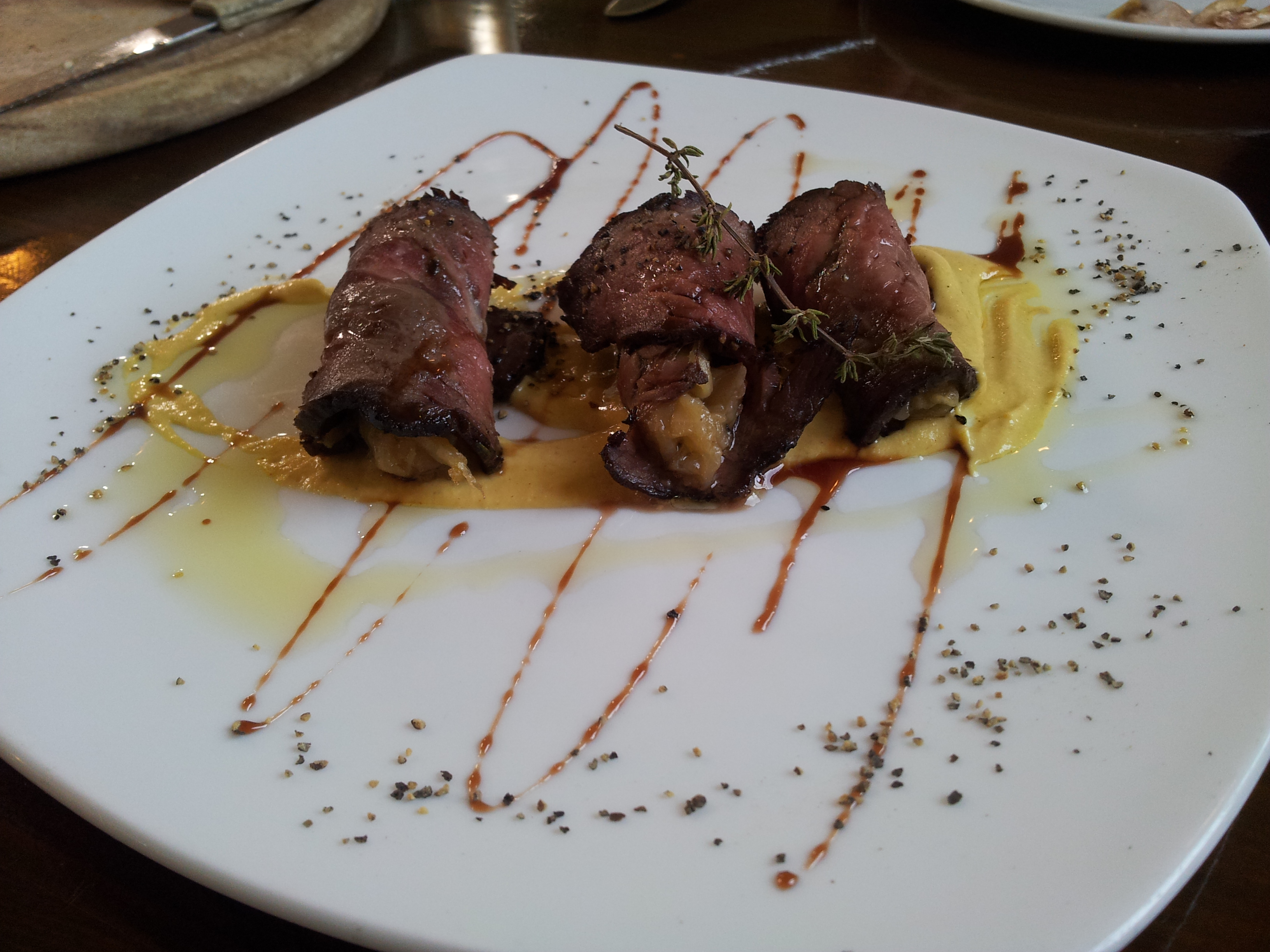 אם הירדני במגדל לא רייר את עצמו למוות עד עכשיו, הוא ודאי קרס כשהגיעו העיקריות. בצד אחד - פילה בקר, 200 גרם של בשר שהגיע, כמו כל חומרי הגלם של רוטנברג, מחקלאי האזור. נתחי הפילה הוגשו בתוך ציר בקר ושמנת, כשלצידם תפוחי אדמה ופטריות. מנה מעולה אבל גם לא הפילה מהכסא, בעיקר כי עמדה בצילה של המנצחת הגדולה של הערב.
