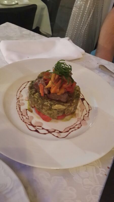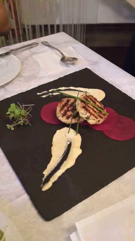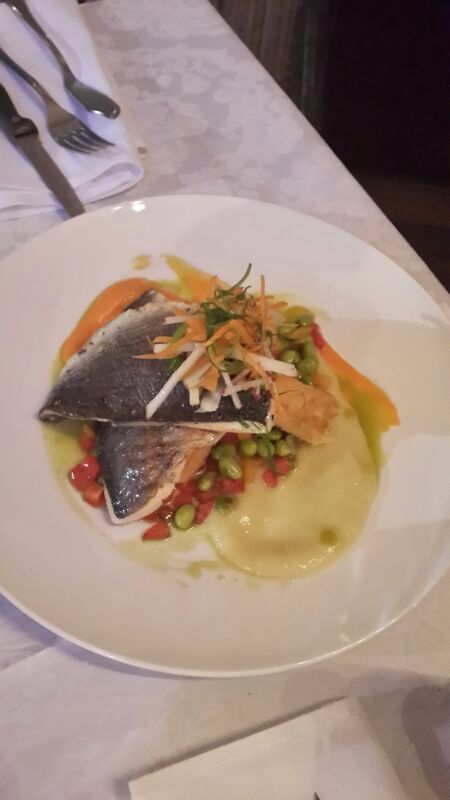 אחרי שנרגענו והתרעננו בסיידר חם עם אניס, הגיעו המנות העיקריות. פילה דניס על מצע לבבות דקל עטופות בפנקו וכרישה (126 ₪) - מנה צבעונית, עדינה ומשביעה ללא תחושת כבדות, המאפשרת ליהנות מרכותו הנפלאה של הדניס, כאילו הרגע משו אותו מהים היישר לצלחת. המנה השנייה הכילה שתי טבעות פילה (189 ₪) בצבע ורדרד, מצופות בקראסט מיוחד של פטריות ובצל על מצע סלסה ירוקה מדהימה, המעניקה חמיצות מעודנת לצד תפוחי האדמה. שתי המנות העיקריות יפות וטעימות להפליא מעלות את רף האיכות לדרגות הגבוהות ביותר. איך אומרים בצרפתית - "סה בון פור לה מוראל" כי המורל של הקיבה שלי היה בשמים ואשתי לא הפסיקה לפזר חיוכים בין הביסים.