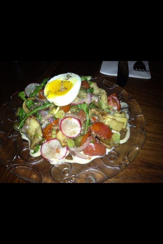 דקה לפני הפירוט, מילה קטנה לסלט הארטישוק. כן, החלטתי פשוט לפנות לסלט עצמו, ובכן; תודה! תודה שהכנסת לפרספקטיבה נכונה את ארוחות הפועלים שאני אוכל כל צהריים במסעדות מזדמנות. תודה שהזכרת לי שמטבח זה לפני הכל אמנות, תודה על כמה דקות של אושר מזוכך מהסוג שרק גרגרנים אמיתיים יכולים להפיק ממנה מושלמת בצלחת. תודה לך סלט ארטישוק קטן. אנחנו עוד ניפגש.