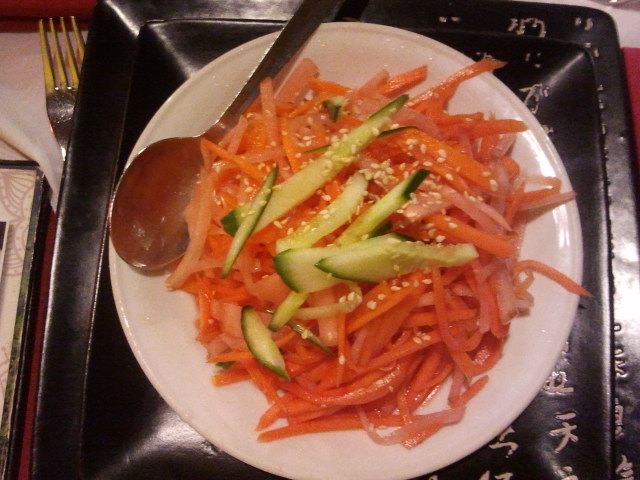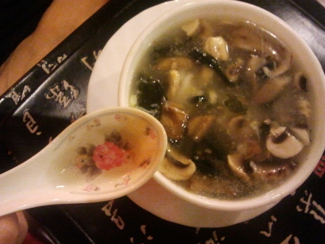 את הארוחה פתחנו עם סלט סיני (23 ₪) ומרק פירות ים (30 ₪). המרק היה עשיר בפטריות ובפירות ים ובטעמים מארץ רחוקה, בעוד הסלט הסיני היה חמוץ - מתוק והספיק כדי לפתוח לשנינו את התיאבון כמו שצריך.