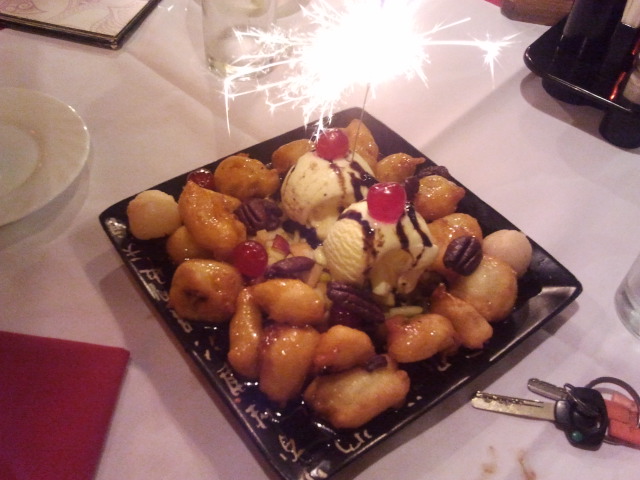 למנה אחרונה הלכנו על קינוח הבית (22 ₪ לסועד) שדאג לכך שברגע אחד נחזור להיות ילדים. קשה להישאר אדישים לנוכח טעם הבננה המטוגנת, הליצ'י והאננס המטוגנים, כדורי הגלידה וסלט הפירות הטרי שנחתך לפי הזמנה. מדובר על פיסת נוסטלגיה רצינית ששווה לבדה ביקור במסעדת טאיפיי.