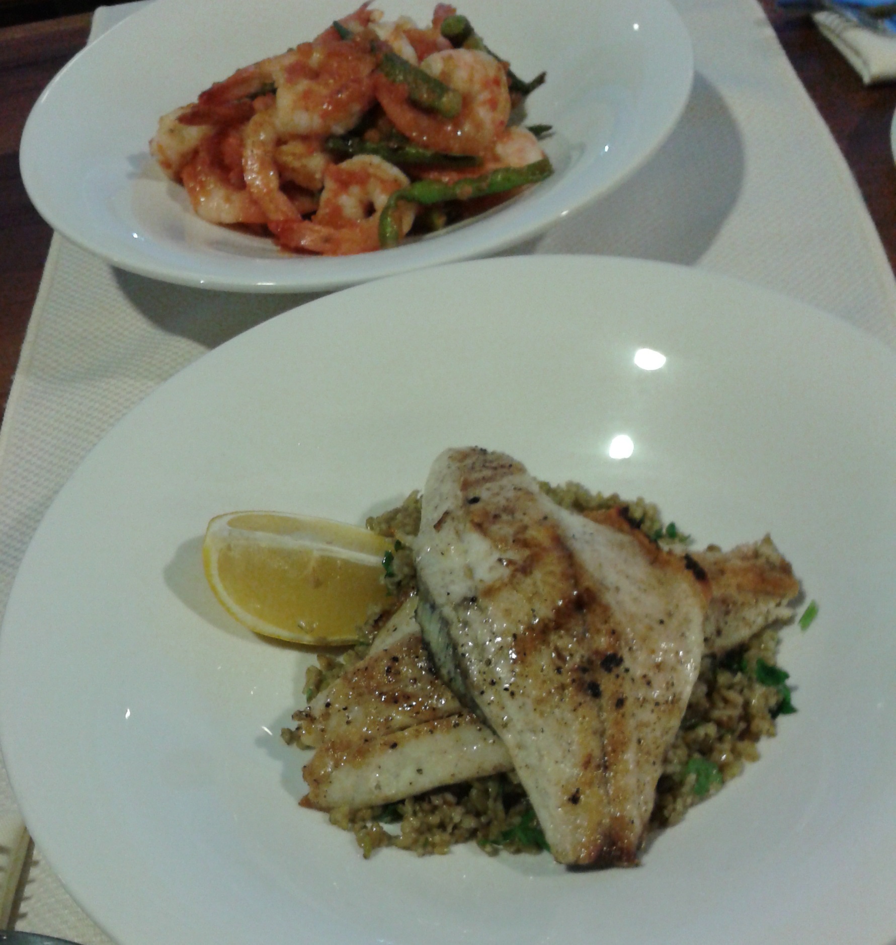 לעיקרית דגנו מהתפריט שתי עיקריות-ים: דג ברמונדי על מצע חיטה ירוקה קלויה (89 ₪) – "פרייקה" בלשון המקום, ומנה מקורית ומסקרנת של חסילונים עם במיה ואריסה (89 ₪). פילה דג הברמונדי נמשח בשמן זית, נצרב על מחבת לוהטת ותובל בלימון, מלח ופלפל. הפרייקה תרמה ניחוח מעושן נפלא והשתלבה היטב עם עשבי התיבול ועם הדג. רוטב החסילונים בושל בסלסה עשויה עגבניות, פלפלים מתוקים וחריפים ולימון כבוש, כשרכיבי הרוטב נטחנו לקרם גס בו הוקפצו קלות במיה מצרית עדינה, שעועית גינה וחסילונים אדמדמים. ככל שאהבנו את הדג והתרשמנו מהכנתו, קומבינציית הצבע והטעם במנת החסילונים שבתה את ליבנו, כמו גם השילוב בין המטבח הערבי לספרדי ולכן, הוכתרה כמנה המנצחת לביקור זה.