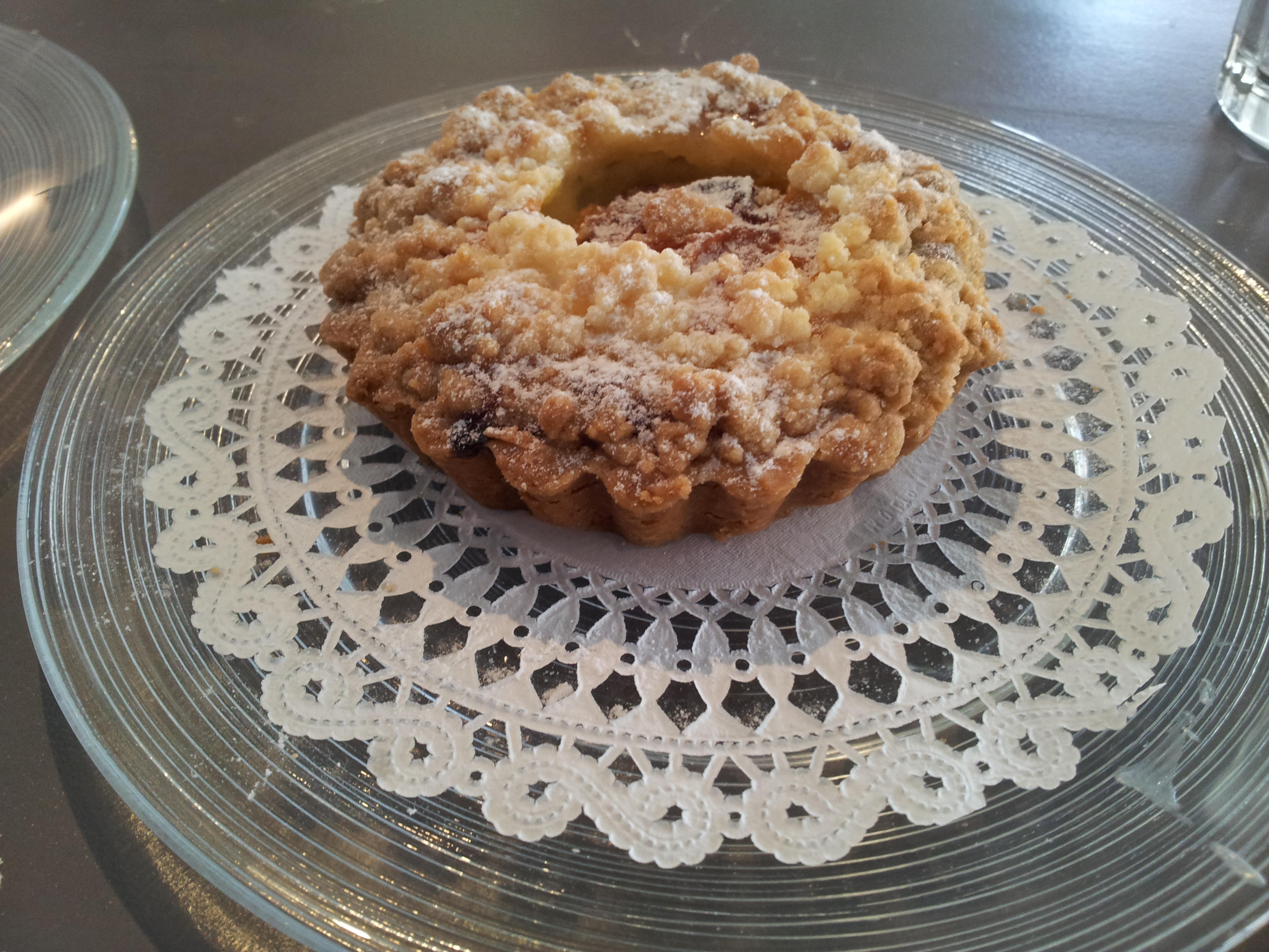 בגרציא תמצאו גם מאפים - מלוחים ומתוקים ברמה אחרת - להזמנה במקום או לרכישה הביתה. גם אנחנו זכינו לקינוח גורמה, וזה קרה בדיוק כשבהינו במגש עוגיות מגרות שנראו כאילו זה עתה יצאו מהתנור. את העוגיות לא אכלנו, אבל התענגנו על טארט משמש (31 ₪), שהיה פריך במדיה הנכונה ומתוק כמו שמתוק צריך להיות. גם הוא כמובן, הוגש בצורה מעוררת הערצה - על צלחת זכוכית ועליה מפית מעוטרת - כאילו הוגש לנו בטעות במקום למלכת אנגליה.