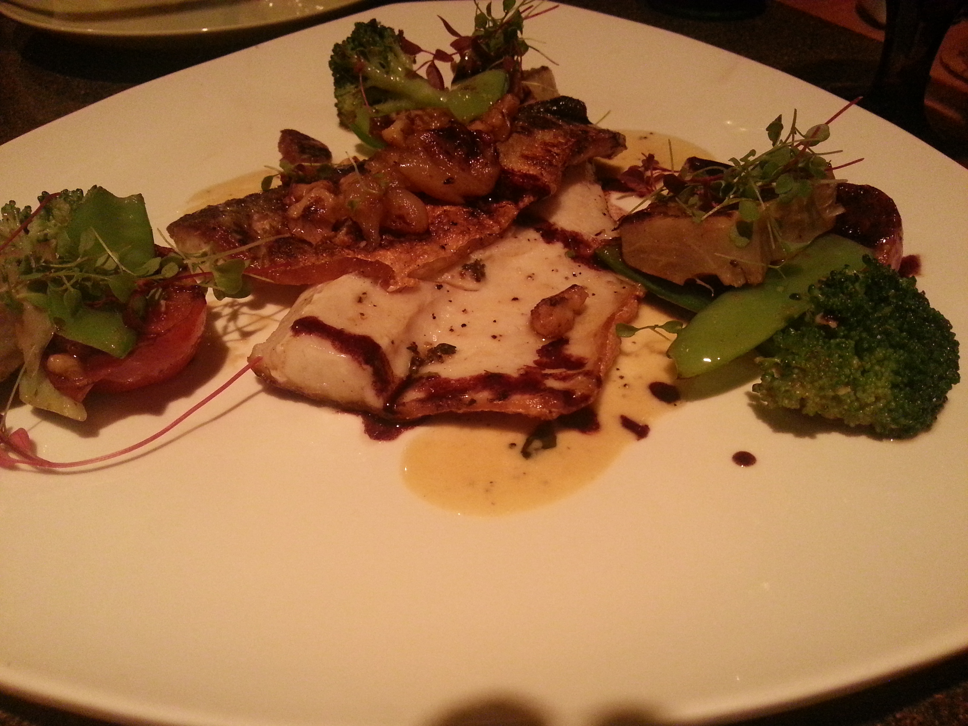 בן הזוג שלמרבה הזוועה אינו שותף להתרגשותי מכבד האווז, מצא למרבה הפליאה בפעם הראשונה בחייו, מנה כך טען, שגרמה לו ל... צמרמורת. לא נגענו. ההפתעה הגדולה אף יותר הייתה שמדובר במנת סלט - אך שימו לב איזה סלט: סלק טרי, בלסמי, שזיפים, צנוברים וברולה של גבינת סנט מור. אפילו אני, שסלק אינו מחביביי, נאלצתי להודות שמדובר בשילוב מבריק. אמו של בן הזוג, ששמעה אודות הסלט בליל שבת, קצת פחות התלהבה. בכל זאת, בנה היקר טועם סלטים שעלולים להתחרות עם סלטי שישי המרוקאיים של אמא? אבוי לנו. מזל שהיא לא מכינה כבד אווז. אף אחד בעצם כבר לא מכין כבד אווז. מזל שיש את שאול בן אדרת. טעמנו גם לברק על הפלנצ'ה עם קונפי עגבניות ושלושה שרימפסים משגעים אבל זה, כבר כמו להעמיד את מלכת היופי מול בר רפאלי. כבד האווז תמיד יהיה זוהר יותר, קשה להתחרות בו.