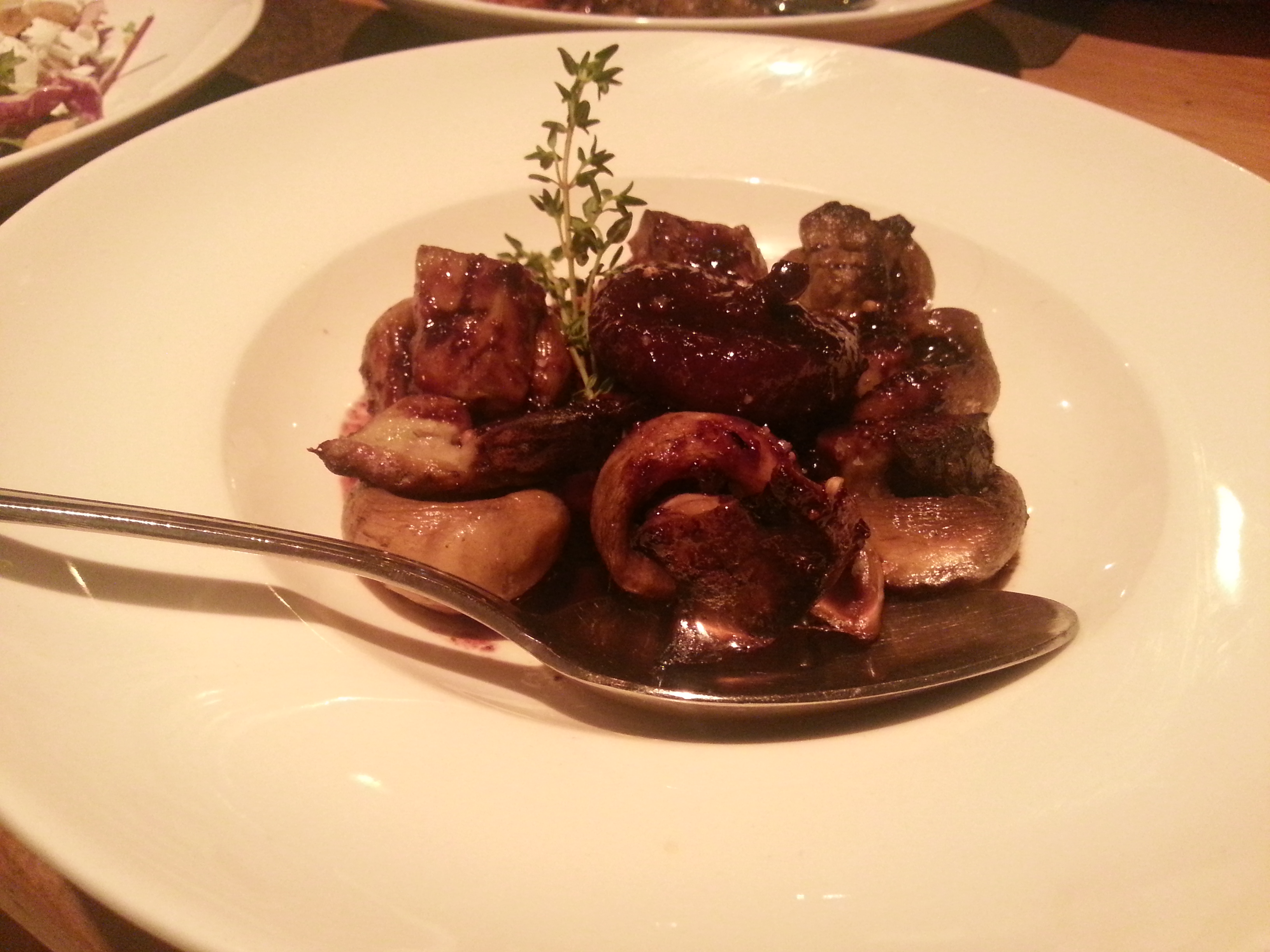 ואם כבר בבליסה עסקינן, נרשם עילפון חושים בשלב כלשהו בערב זה. אני יודעת היטב שזה לא פוליטיקלי קורקט, אבל אם יש מנה שמצליחה להפיל אותי מהרגליים ולגרום לי לאבדן חושים- זו אותה מנה שכבר לא ניתן למצוא אותה באף מסעדה - כבד האווז כמובן. כבר נמאס לי לכתת רגליי בין מסעדות בודדות שעוד מגישות אותה אבל כשאני נתקלת בו - איני עומדת בפיתוי. בקימל מדובר בחגיגה של ממש ולמרות היכרותי המוקדמת, אני נהנית לגלות כל פעם מחדש כמה היא משובחת. פטריות ממולאות בכבד אווז ברוטב יין פורט, תאנים ושזיפים - בשביל מנות כאלו שווה לקום בבוקר. כבד האווז הדומיננטי נח בתוך הפטרייה שטעמה עדין, כשהשניים המופלאים הללו אפילו לא היו זקוקים לרוטב המעולה שהגיע עמם. מנה מרגשת.
