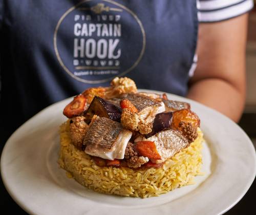 ב"קפטן הוק" שואפים להעניק חווית מאכלי ים שונה מזו המוכרת, ועושים זאת באמצעות טעמיו וניחוחותיו של המטבח הערבי. "היה חשוב לי להביא סגנון חדש, תוך שמירה על האותנטיות והייחוד של המטבח הערבי", מספר לנו בלאל. "בתפריט ניתן למצוא מנות ערביות מפורסמות שבמקור מבוססות על סוגי בשרים שונים, אך אצלנו הן מוכנות עם דגים ופירות ים". ואכן, בתפריט תוכלו למצוא מקלובה (84/88 שקלים) עם דגים או פירות ים, עראיס (66 שקלים) הממולא בבורי ובמוסר ים, ואפילו שווארמה (69 שקלים) העשויה דג מושט.