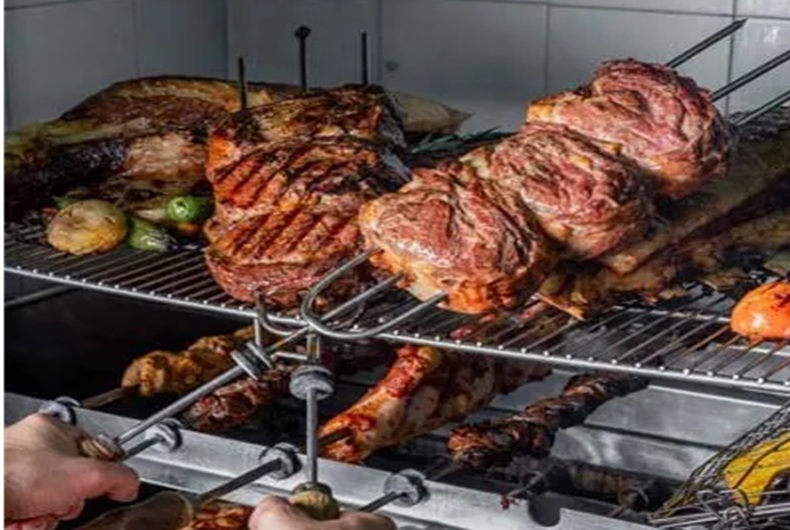 באירוע שהתקיים במסעדה, המלצרים נשאו שיפודי ענק עם נתחי בשר שנצלו לכדי שלמות, ונפרסו ישירות לצלחות האורחים לפי דרישה.