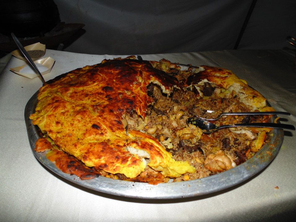 הארוחה הוגשה בתוך מתחם ענק וסגור, כשעל הרצפה פופים וביניהם שולחנות. המלצריות ערכו מול עינינו את השולחנות על פי כל כללי הטקס ואז החלו להביא את המטעמים ישירות מהמטבח של יוחאי, שהוקם, כאמור, בשטח. באמת שעד אותו רגע לא האמנתי שאפשר לבשל בשטח ארוחת גורמה, אבל אז הגיע קבב הטלה על עגבניות וחצילים שרופים והפסטה בעבודת יד שתובלה בזעתר, שמן זית וירקות שורש מהמדורה, שיפודי הענק של אנטריקוט ואיברי פנים במרינדה של סילאן וזעתר, תבשיל זנב שור בירקות שורש ויין אדום, שלושה סלטים שבעיני הטעים ביותר היה העדשים המונבטות עם צנונית, כוסברה וגרגר נחלים בבלסמי והתבשיל שהפיל אותנו לחלוטין - "מנסף חצי האי סיני". מדובר בסיר עצום בגודלו (כמו אלו של הצבא) בו נחו יחדיו בשר טלה, עוף, כרובית וחצילים על אורז, חומוסים, קשיו ובהרט על פיתה ענקית.