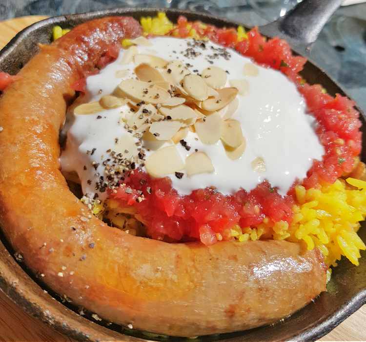 בבר התוסס הממוקם בחצר האחורית של שוק הכרמל מגיעים בשביל האווירה והאוכל הלא מכופתר. בין יתר המנות המלוות את האלכוהול מגישים גם מנה של נקניקיה פלסטינית – נקניקיה גדולה עשויה בעבודת יד צלויה על מחבת לוהטת, עם בהרט, שקדים, אורז ויוגורט (58 שקלים), המבוססת על טעמי המזרח התיכון, משלנו מה שנקרא, בניגוד לרוב הנקניקיות האחרות בעיר המבוססות על טעמים אירופאיים ברובם.