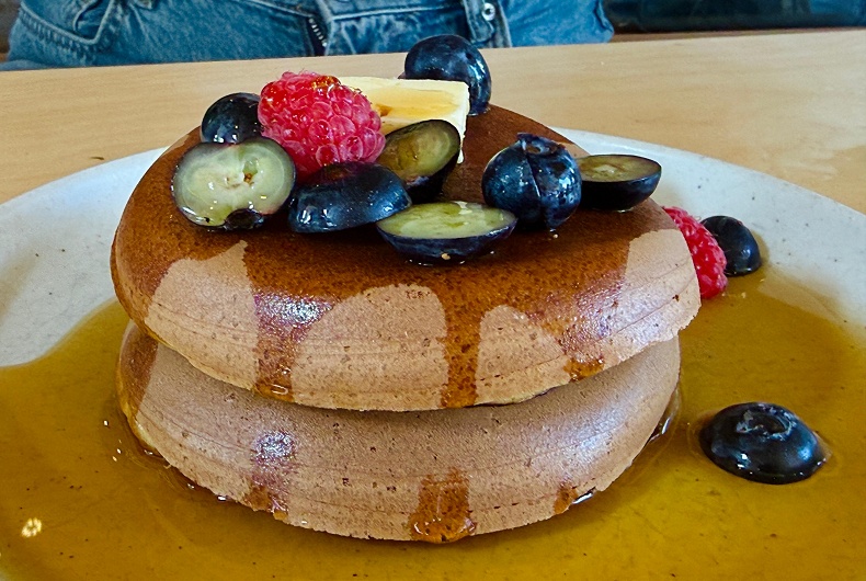 יש 2 אופציות. הראשונה עם יוגורט, יוזו ומאצ׳ה, והשנייה, זאת שלקחנו - עם סירופ מייפל, חמאה ואוכמניות. מיוחד, שונה, אסתטי מאוד. לא יכול להגיד שזה הפנקייק הטוב ביותר שאכלתי אי פעם (לא בעולם, הפנקייק היפני בבנגקוק לוקח בוודאות, ולא בטוח שגם בארץ) אבל בהחלט כזה לא טעמתי בשום מקום. שווה לטעום.