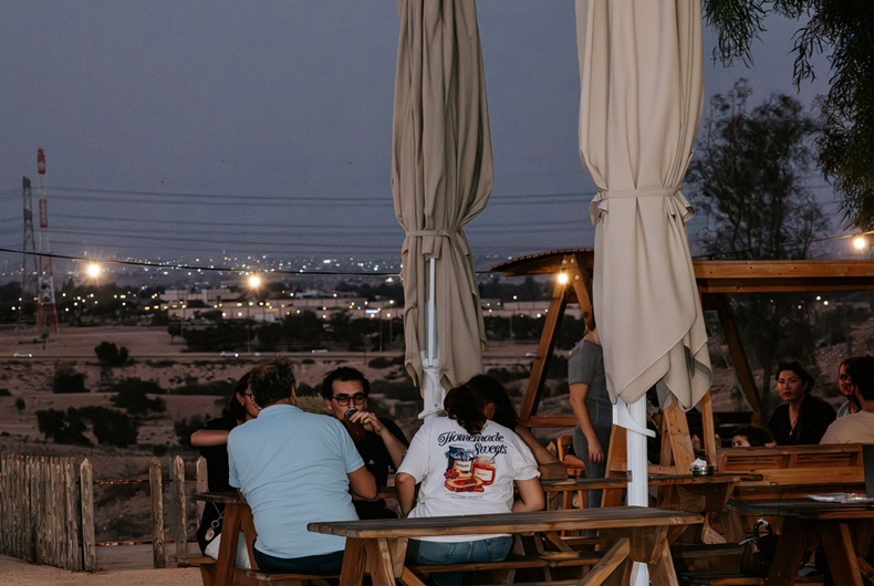 הקסם האמיתי? לבוא לכאן בשעות השקיעה ולתפוס מקום ב"בר למדבר" - אזור ישיבה גבוהה שצופה למדבר עד האופק. זו לא סתם עגלת קפה, זו קהילה שלמה עם ערך ותוכן, שכוללת מכירות יד שניה, יוגה בימי שני, דוכנים והופעות בשישי, ואפילו הקרנות סרטים.