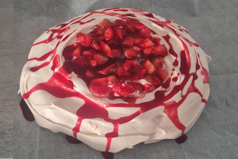 קינוח נטול גלוטן מלידה שלא מקבל מספיק כבוד ביומיום, אבל בפסח הופך להיות הפתרון המושלם עם בונוס קטן שעוזר בתקופה שצריך לפרק עצבים – מאכל שחייבים לשבור עם כף. ואז, שבר המרנג הלבן עם הקרם שנשפך ממנו יחד עם קולי פירות היער... יש שיגידו שזה מזכיר להם את קריעת ים סוף, אבל אלה אנשים שצריכים בדיקה או אשפוז. יש שיגידו שזה מזכיר להם ימים טובים, שבהם לא מתפשרים על שום דבר גם אם אין חמץ או אין מצב להתרחק מהממ״ד, ואלה אנשים יותר שפויים בסיכומו של דבר.