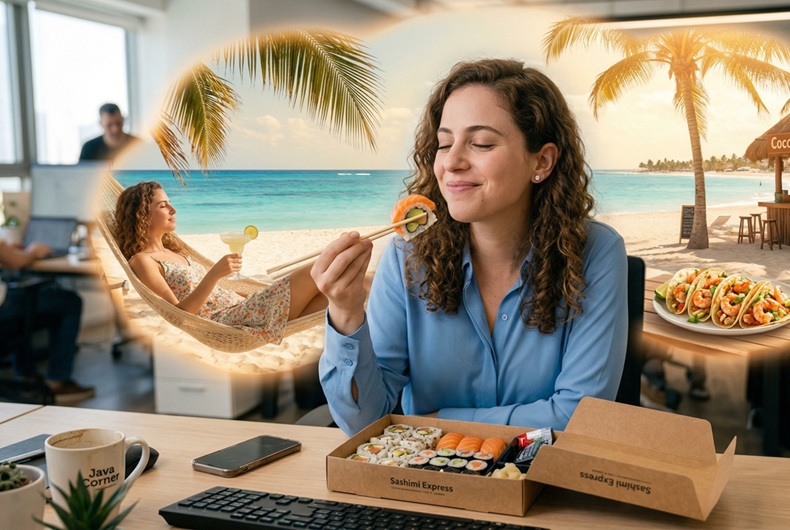 אוכלת סושי וחולמת על מקסיקו. קרדיט צילום: נוצר באמצעות AI