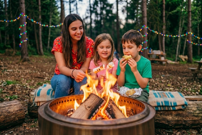 בתמונה: ילדים מעמידים פנים שמרשמלו צלוי זה טעים, ולא נשק להשתקה זמנית. הצילום נוצר באמצעות AI
