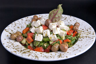 עגבנייה, מלפפון, גמבה חתוכים גס, תערובת חסות, בצל, בולגרית, זיתי קלמטה