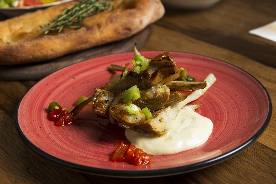 ופפריקה מעושנת, מוגש עם 2 פיתות