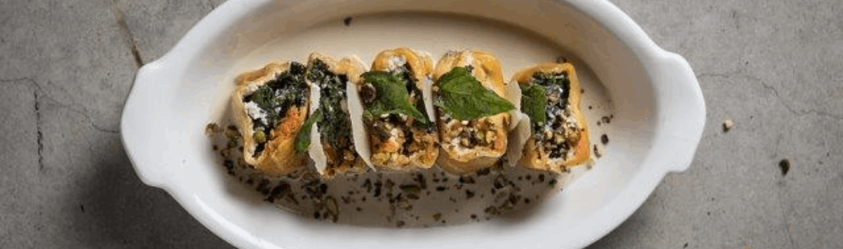 רוטב עגבניות, מוצרלה ,תרד, פטה, זיתי קלמטה, פרמז'ן