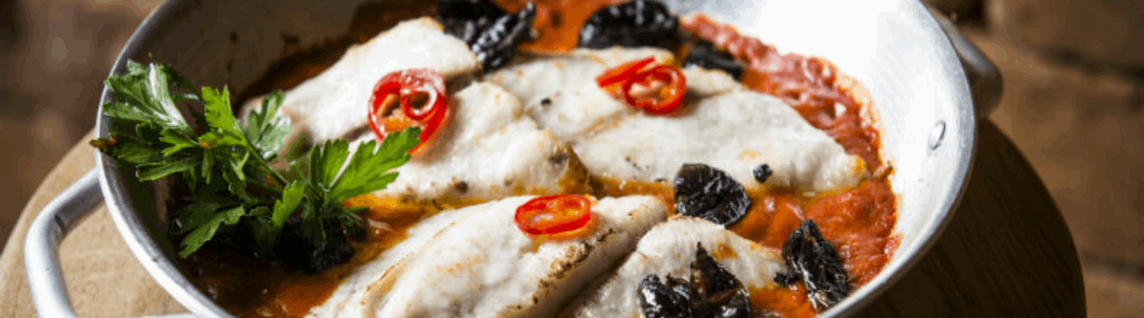 ביין מרסלה, כסיס, בצל, על מצע פירה תפוחי אדמה