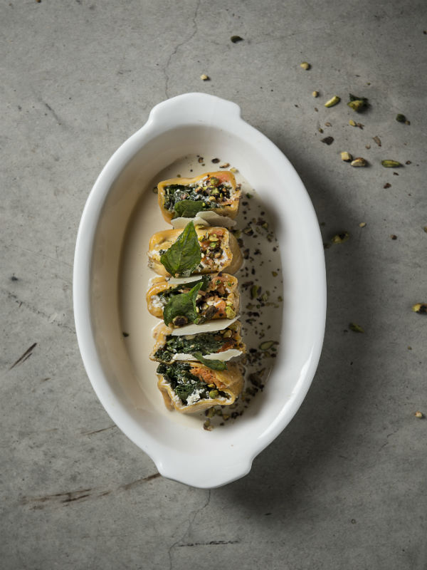 פפרדלה רוטב עגבניות, גבינת מסקרפונה, שום, פרמז'ן ופטרוזיליה