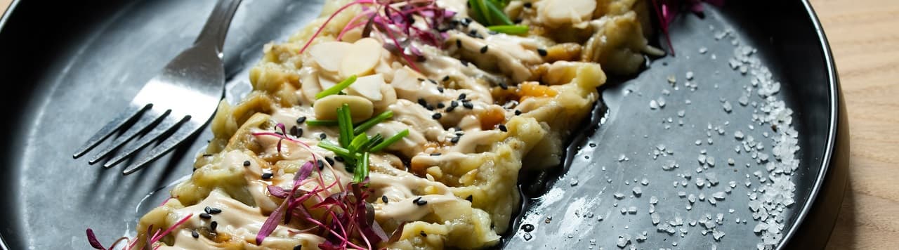 ברוסקטה קרם פרש מחית כמהין סלמון מעושן ביצה עלומה ורוטב הולנדז