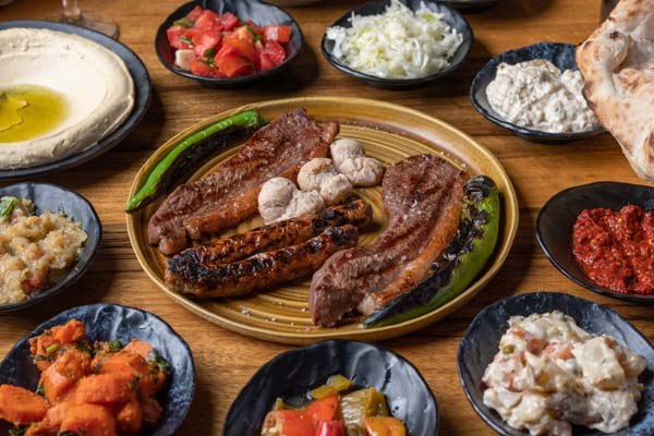 חומוס, טחינה, חצילים במיונז, סלט ירקות 4 סוגים, ברטובה, גזר מרוקאי
