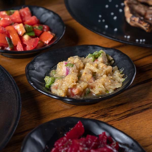 חומוס, טחינה, חצילים במיונז, סלט ירקות 4 סוגים, מרדומה, גזר מרוקאי