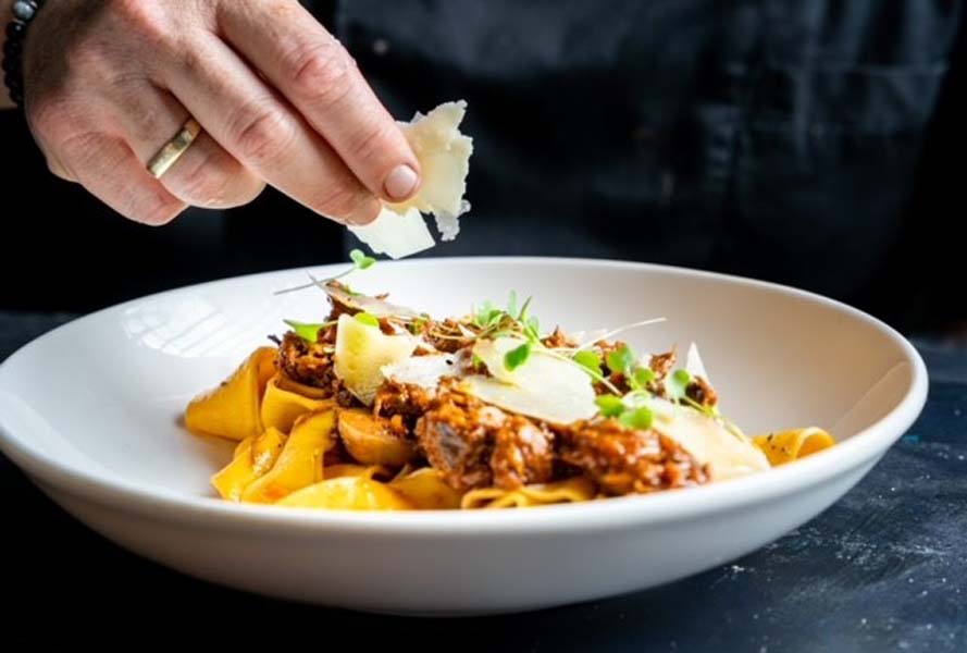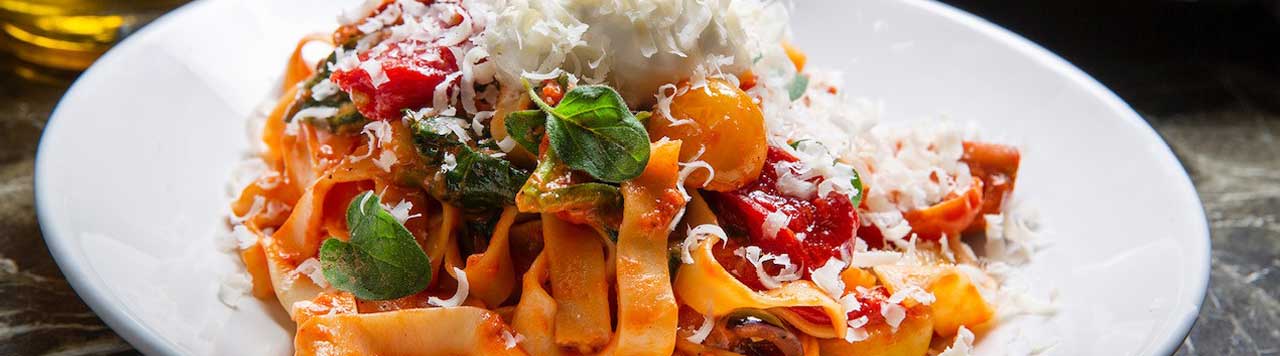 פסטה טליאטלה ברוטב עגבניות איטלקי מסורתי, חמאה, גלופות פרמז'ן ובזיליקום