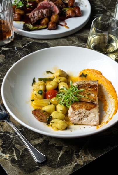 ניוקי בציר בקר עשיר עם לקט פטריות, קוביות פילה בקר, פרמז'ן, שום ונגיעת שמנת מתוקה