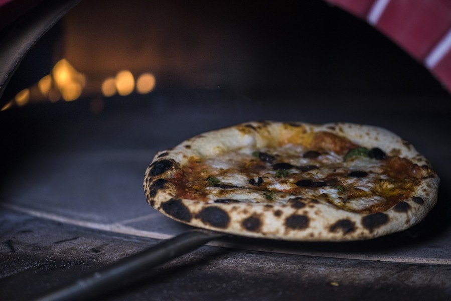 מוצרלה, חצילים קלויים,רוטב עגבניות, פלפל חריף,  אנשובי ורוקט טרי