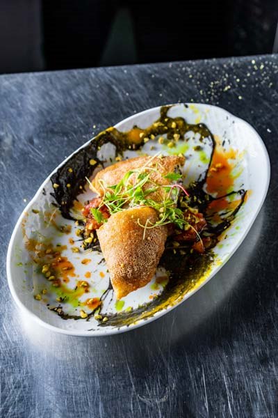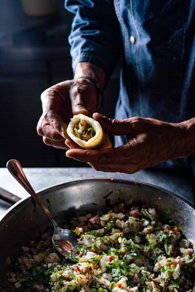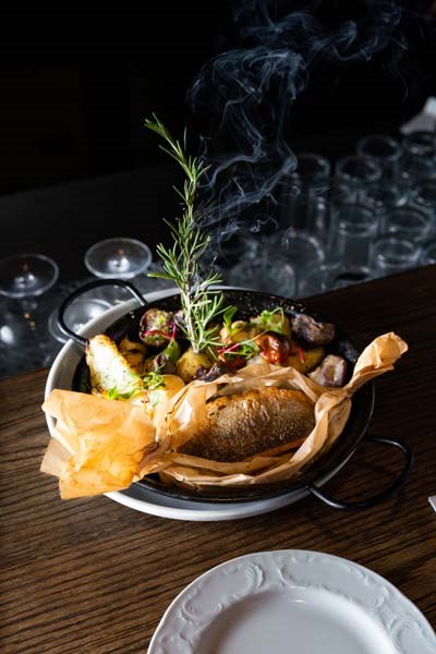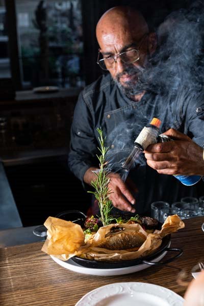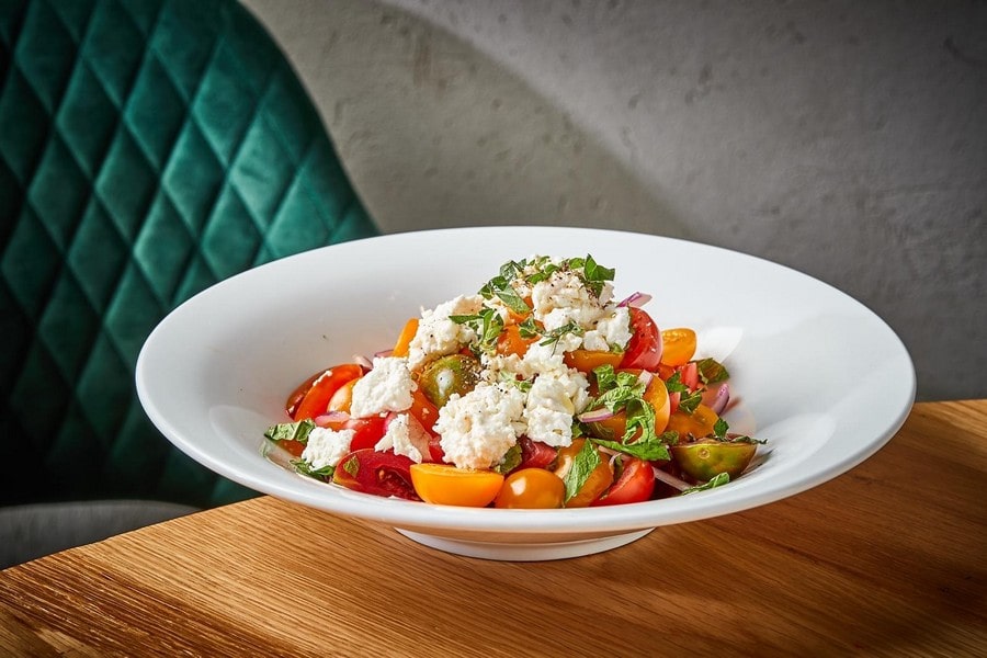 מוגשת על לחם פרנה, סלט עגבניות חריף , טחינה , בצל ופלפל ירוק חריף צלויים