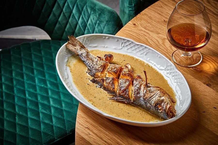 דג ים , בצל , פטרוזליה , לימון , ג'ינג'ר , צ'ילי