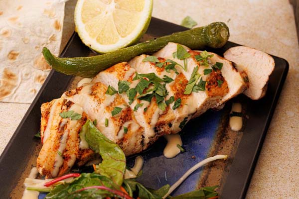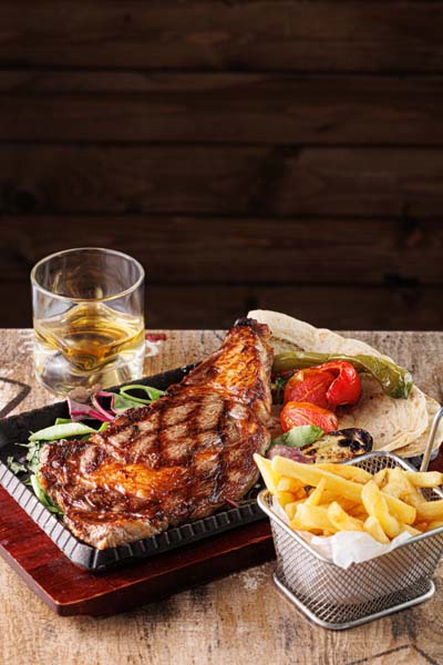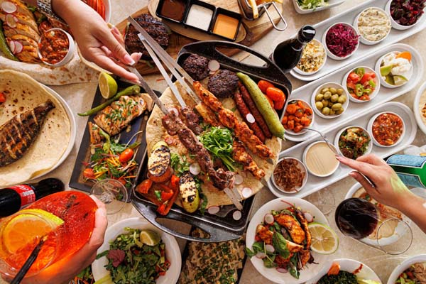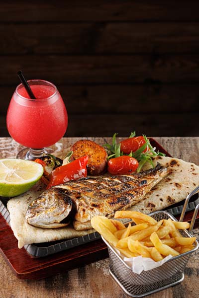 מוגש עם מבחר סלטים,חומוס,צ'יפס,פלאפל,אורז/מג'דרה