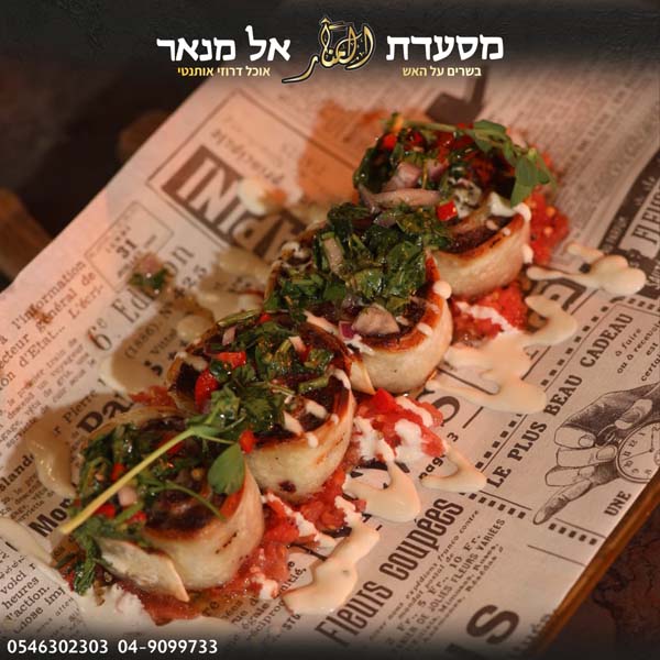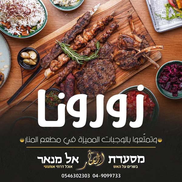 מסעדת אלמנאר - טעמים דרוזיים מרהיבים על האש במסעדת אלמנאר תוכלו לחוות את הטעמים האותנטיים והמרהיבים של המטבח הדרוזי. המסעדה ממוקמת בלב ירכא, עיר עתיקה בארץ ישראל שמכירה בעשרות השנים במסורת הדרוזית העשירה. אלמנאר היא פנינה קטנה בעיר, המציעה אווירה... אינטימית וחמה, מתוך חשיבה עמוקה ומעניינת על התרבויות הדרוזיות. המטבח במסעדה אלמנאר מציע חווית אוכל בלתי נשכחת, שבה נערכים מנות מרהיבות בשר בסגנון הדרוזי האותנטי. המסעדה מתהדרת בשימור המסורת המזון והטכניקות העתיקות של המטבח הדרוזי, ומשתמשת רק ברכיבים טריים ואיכותיים. בתפריט של אלמנאר תמצאו פתיחות מפתיעה, עיקרה טעימות מתוך העשירות הקולינרית של הדרוזים. הבשר, שמכין ומוגש בצורה מושקעת ויצירתית, מבשל על האש המצוייה במרכז המסעדה ומומלח בתערובת תבלינים סודית המעניקה לו את הטעם הייחודי והארומטי שאי אפשר לשכוח. אם אתם מחפשים חווית אוכל מרגשת ומפתיעה, תבקרו במסעדה אלמנאר ותובילו את החושים שלכם למסע מגוון של טעמים מופלאים. הצוות האדיב והמקצועי של המסעדה יעניק לכם שירות , מסוגנן ויהפוך את חווית האוכל לחוויה מושלמת. נשמח לארח אתכם במסעדת אלמנאר ולהביא לכם את הטעמים המפתיעים והמרהיבים של המטבח הדרוזי. אחרי כל ארוחה קפה ובקלאווה ללא תשלום! עוד